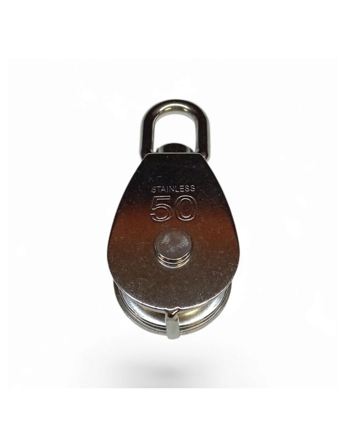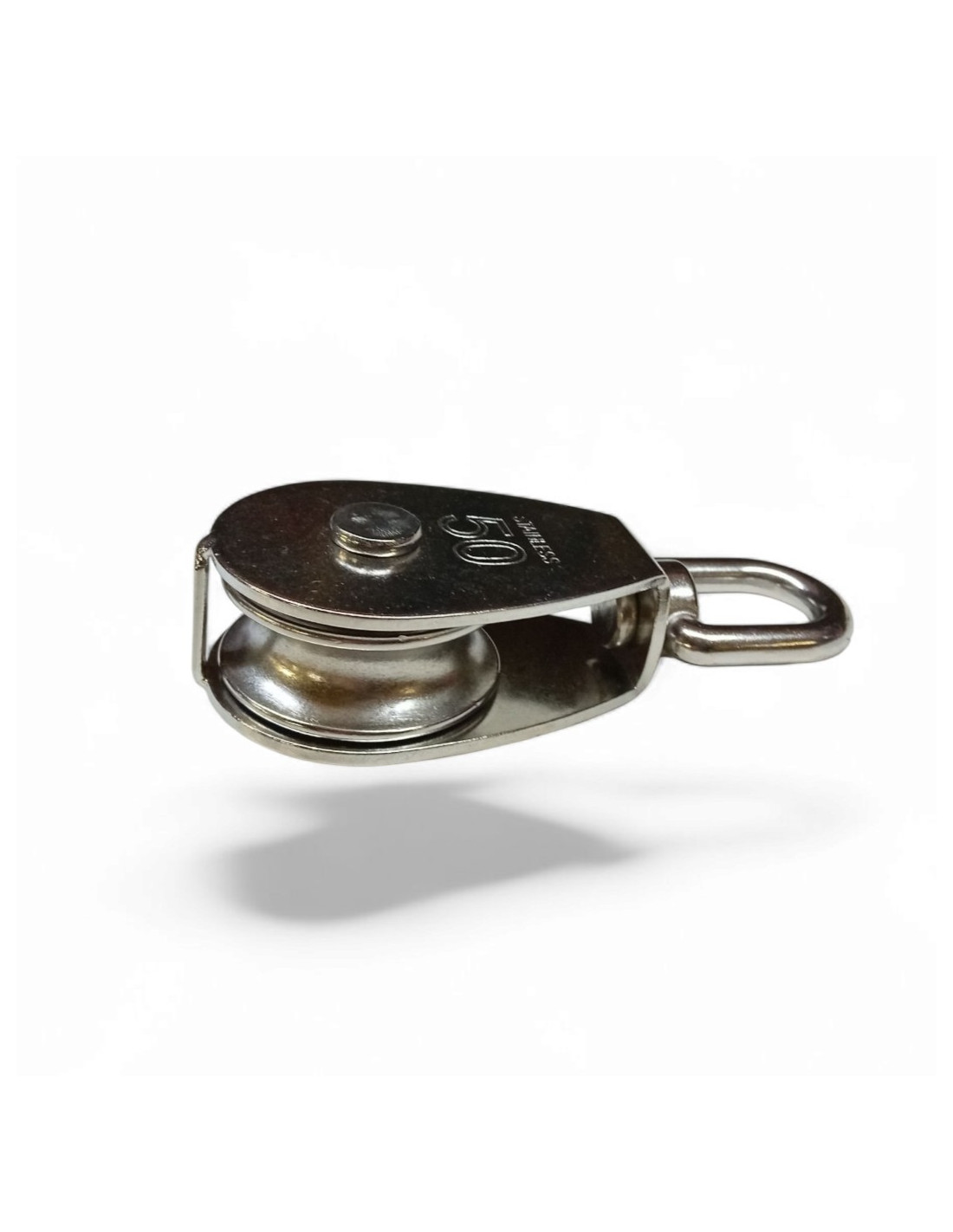 Poulie simple avec émérillon en inox 304 et avec une réa bague laiton.