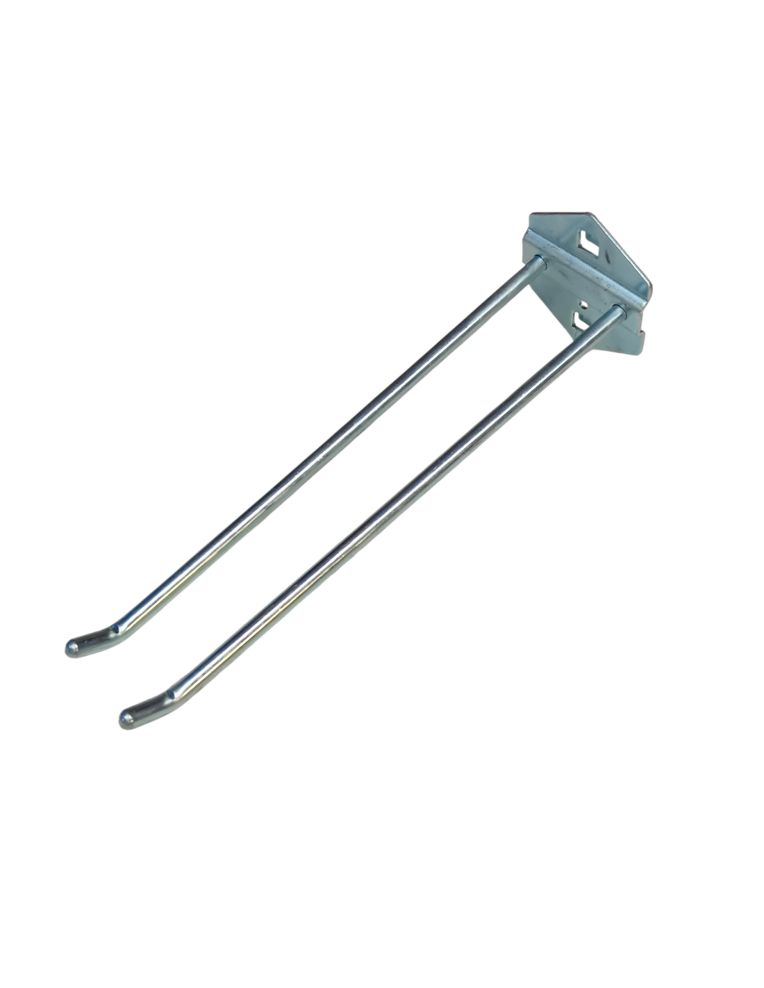 CROCHET DOUBLE POUR PANNEAU A OUTILS PERFORE, L. TIGE 185MM, ACIER ZI