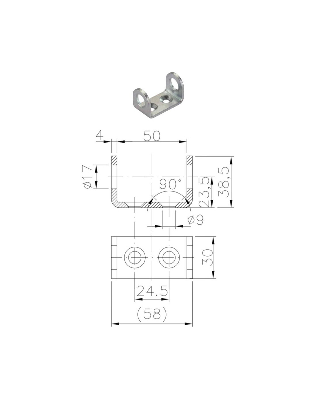 - Dimensions hors tout : 58 x 30 x 38,5 mm
