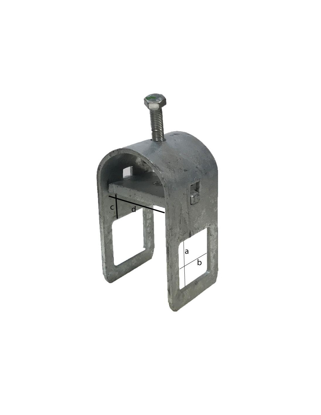 Chape pour fixation de chandelle carrée 50x50 mm sur tube 95x40 mm.