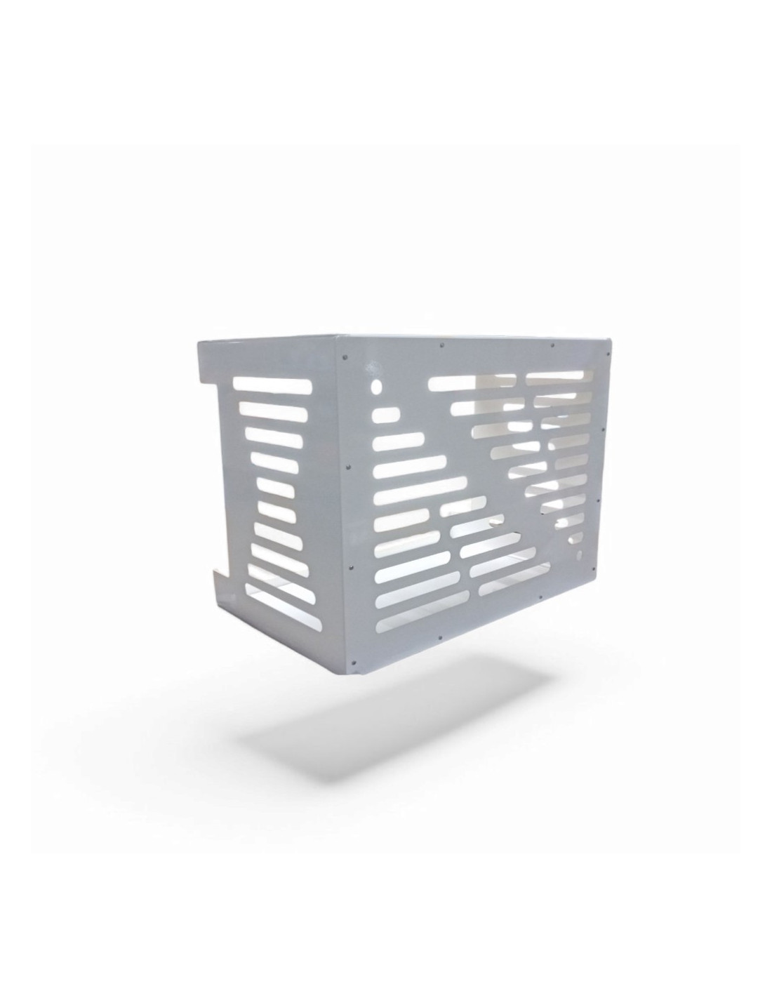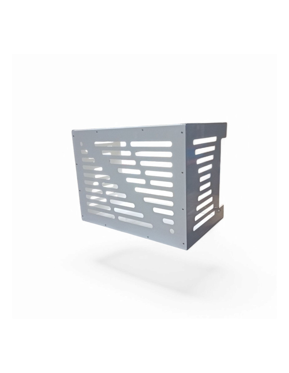Cache climatisation en aluminium thermolaqué blanc mat.