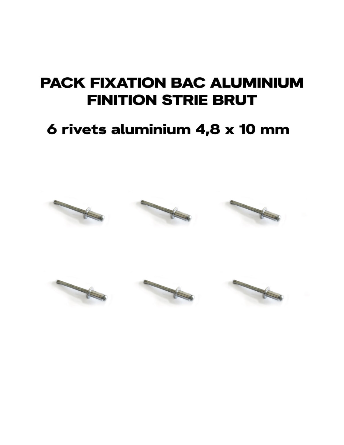 Pack de 6 rivets aluminium tête brute en diamètre 4,8 x 10 mm (longueur).