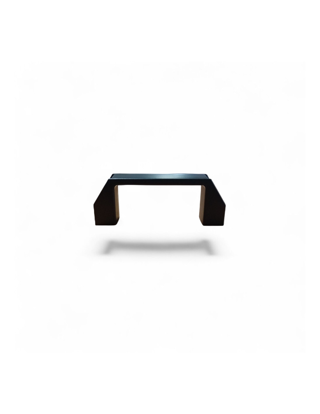Poignée de transport résistante en acier thermolaqué noir de dimensions 108 x 21 x 38 mm.
