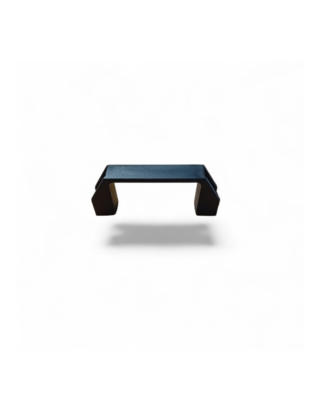 Poignée de transport résistante en PVC noir de dimensions 106 x 20 x 37 mm.
