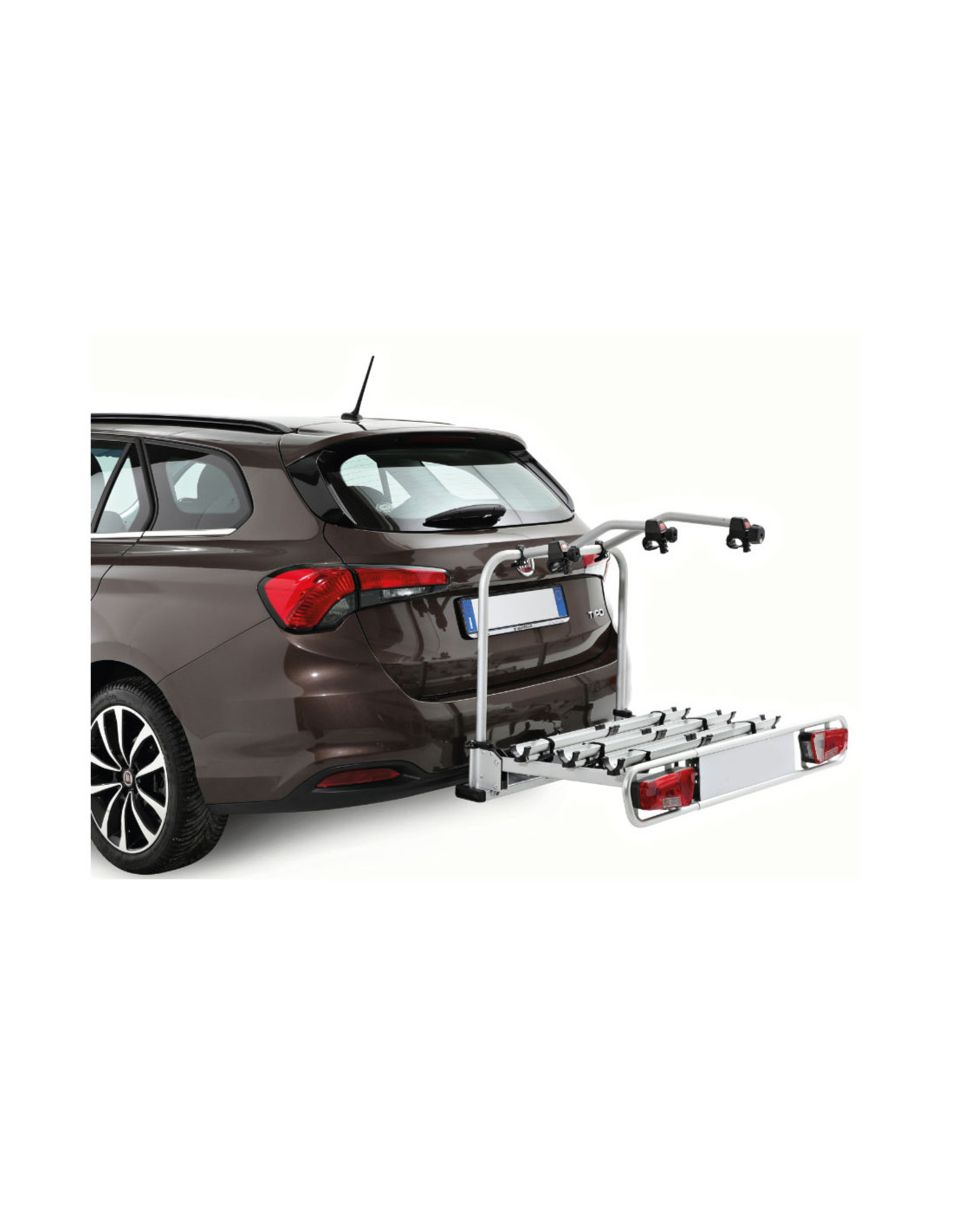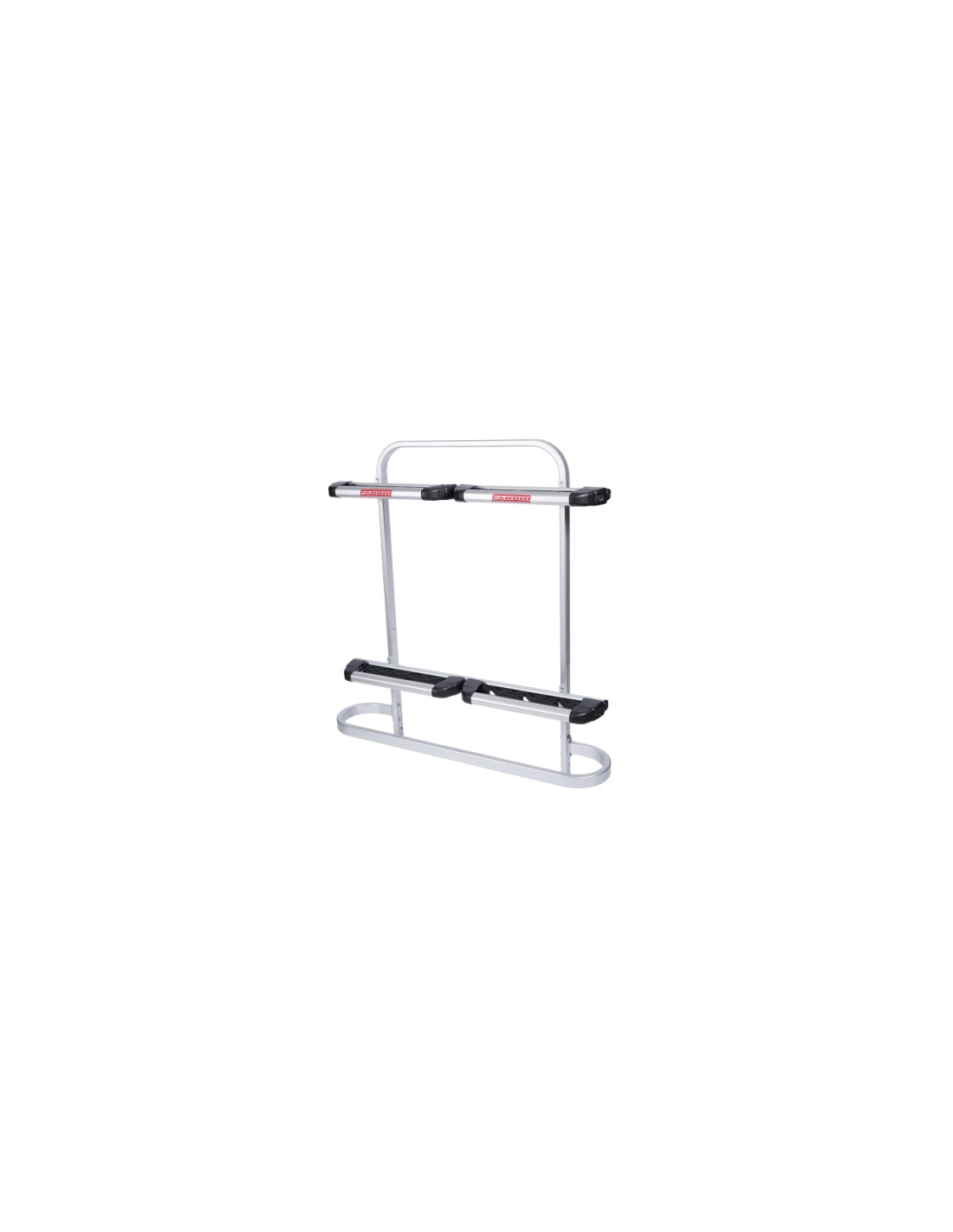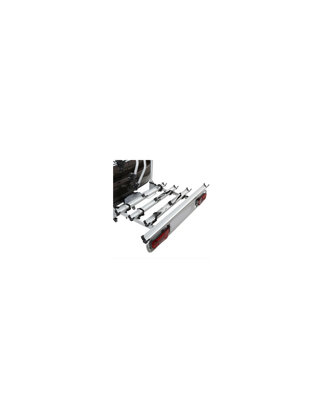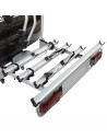 Fixation des vélos à l'aide de bras en aluminium rotatifs à 360° avec protection en caoutchouc ; convient pour des tubes de cadre de 3 à 5 cm (2,4 à 6,5 cm avec option) et pour tubes ovales de 16 cm.