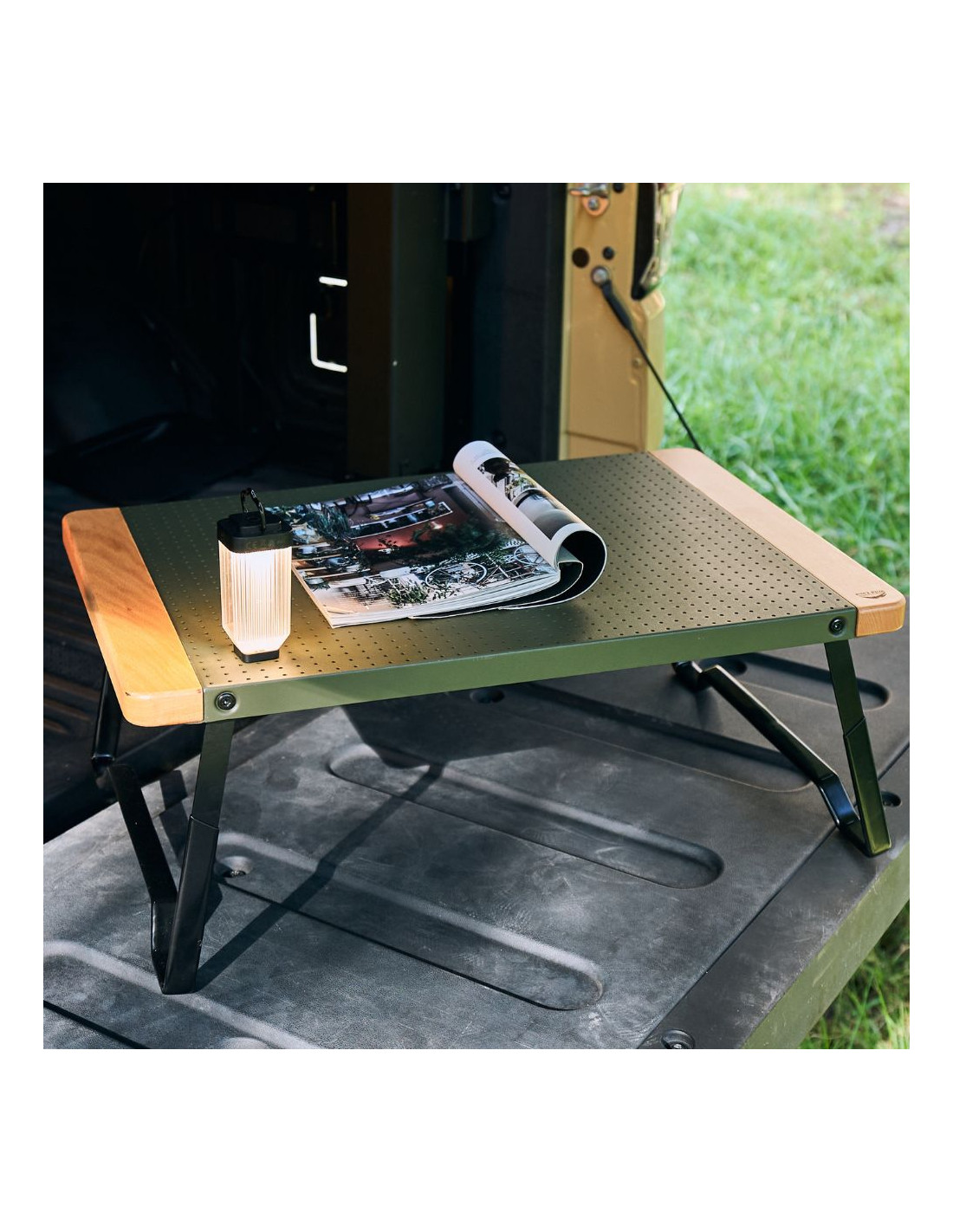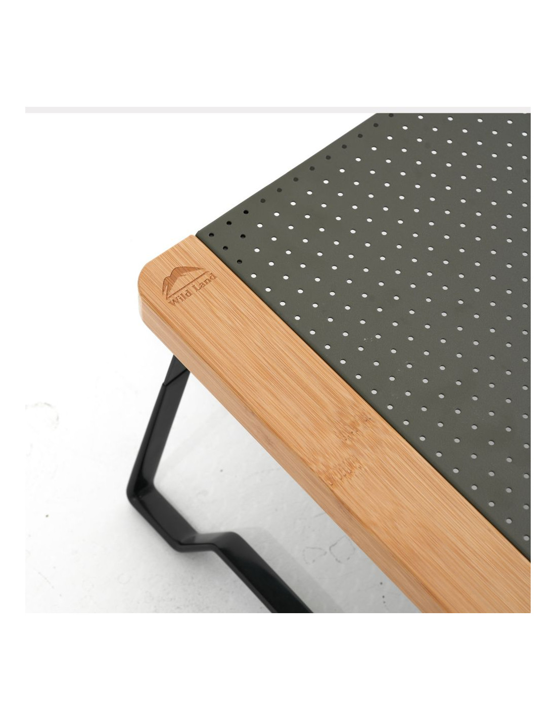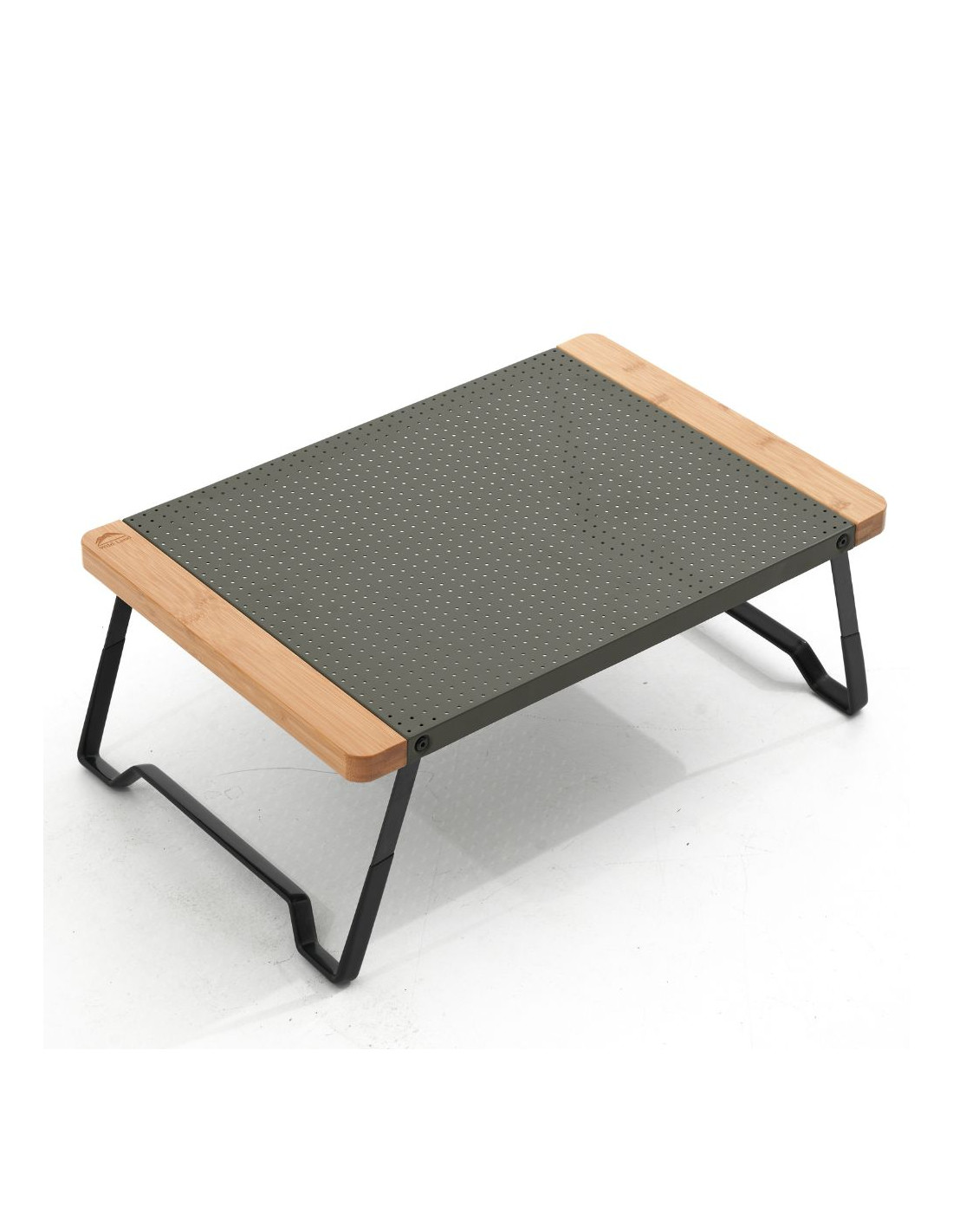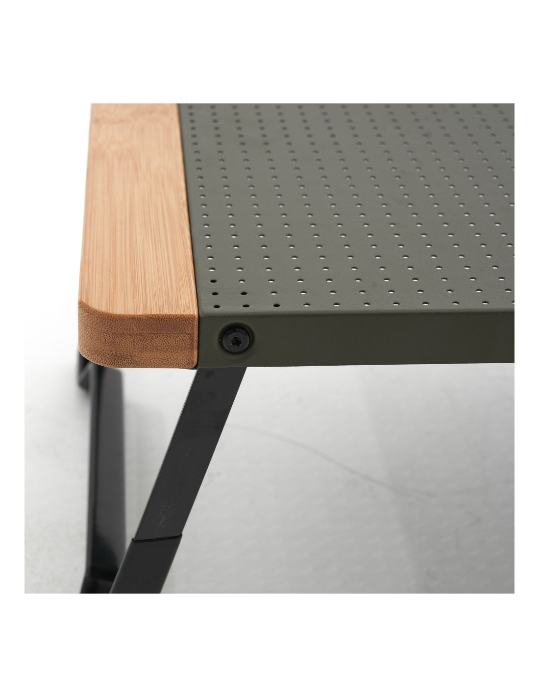 Petite table pliable dotée d'un plateau percé en aluminium avec une couche protectrice spéciale anti rayures et anti glissement.