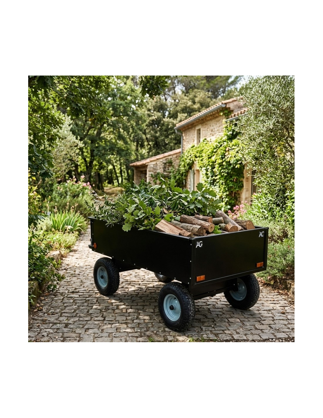 Rattaché à un micro-tracteur ou quad avec anneau, cette remorque vous permettra de répondre à un besoin de manipulation sur terrain agricole ou forestier.