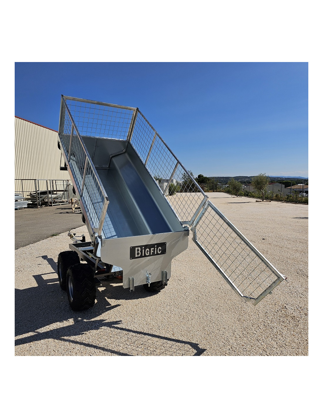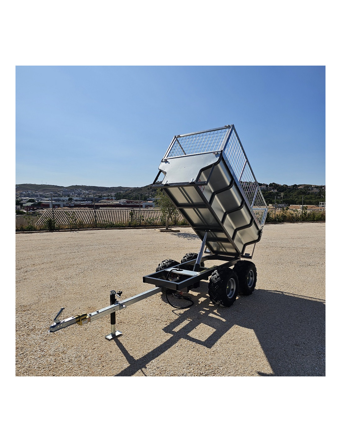 PACK COMPLET - REMORQUE QUAD 2 ESSIEUX BENNE ÉLECTRO-HYDRAULIQUE PTC 1400 KG