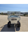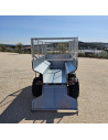 Remorque à usage agricole quad double essieux, avec benne hydraulique à commande électrique.