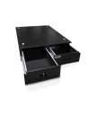 Les 2 tiroirs disposent de fermetures sécurisées et le plateau coulissant se déverrouille à l'aide d'un double système de gâchette présent sous le plateau, à droite et à gauche de celui-ci.