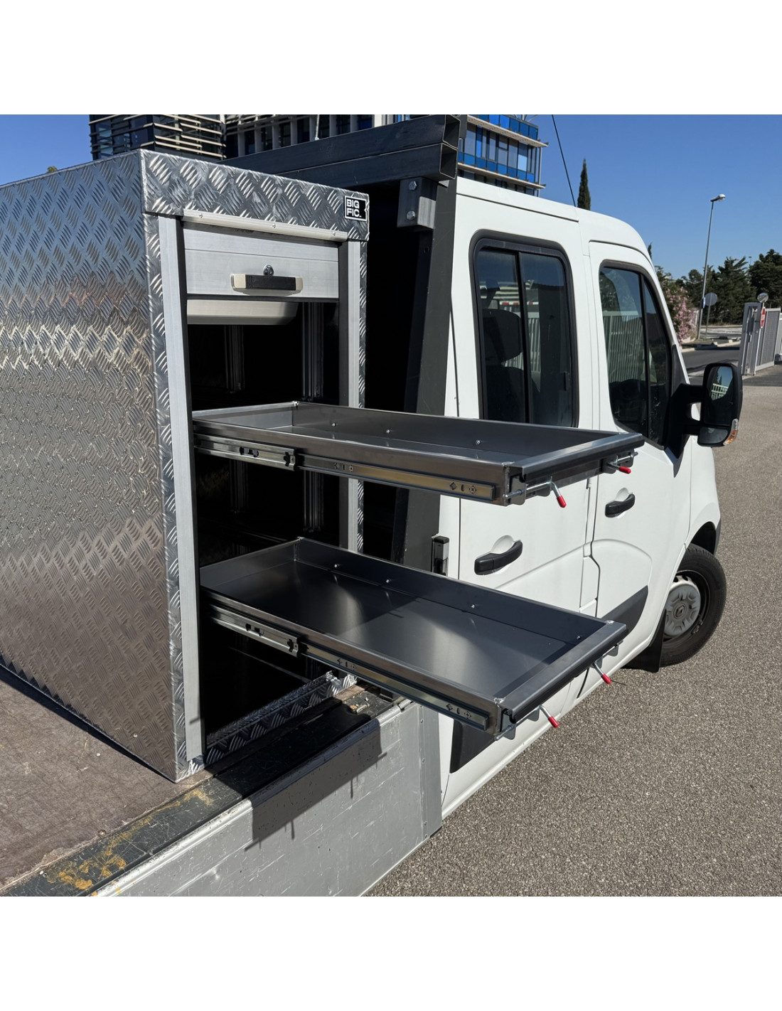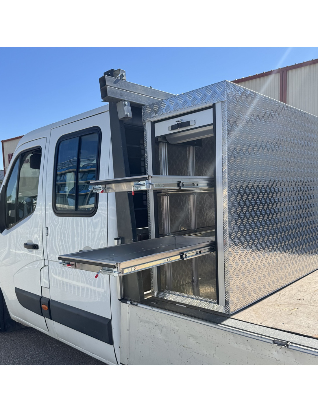 Ce coffre en aluminium pour véhicule offre une solution sécurisée, étanche et durable pour le transport d'équipements ou de biens, protégeant leur contenu contre les intempéries et les vols tout en ajoutant peu de poids supplémentaire au véhicule.